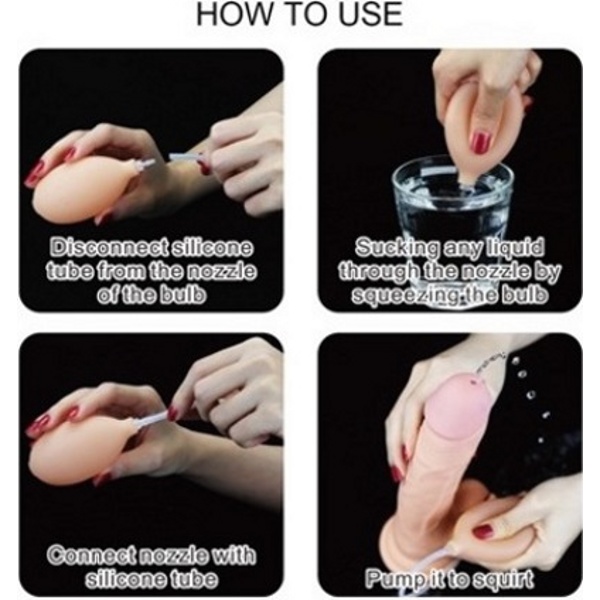 Просто наслаждайтесь ей, а в момент Вашей кульминации Ваш нужно просто сжать грушу , (наполнив её предварительно водой , либо смазкой на водной основе) и игрушка кончит с Вами одновременно!