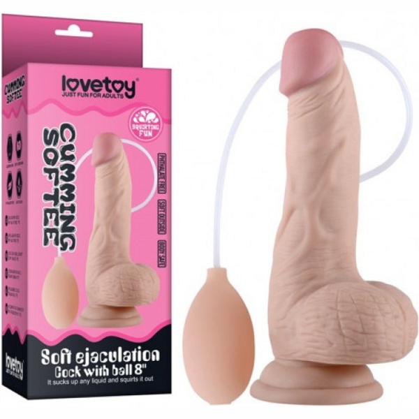 Soft Ejaculation Cock With Ball 8” - реалистичный и приятный на ощупь фаллос на присоске с имитацией семяизвержения