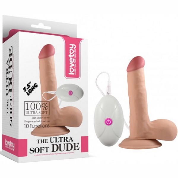 The Ultra Soft Dude Vibrating 7.5” - Реалистичный фаллос-вибратор с выносным пультом управления.
