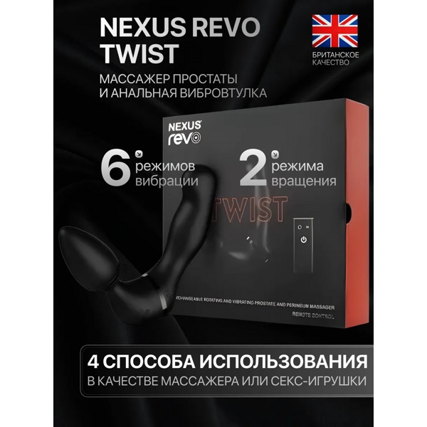 Nexus Revo Twist — гибридная игрушка, которую можно использовать несколькими способами, сочетая не только режимы стимуляции, но и различные формы: классическую анальную пробку и анатомический стимулятор простаты.