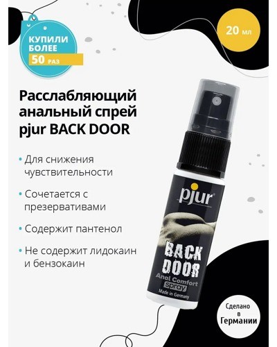 Уникальный анальный спрей Back Door Spray с высокой концентрацией ингредиентов. Снижает чувствительность и возможные неприятные ощущения анального контакта. Насыщенный спрей в паре с лубрикантом BACK DOOR glide можно использовать для более агрессивного анального секса или фистинга.