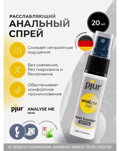 Уникальный анальный спрей Pjur Analyse me Spray снижает чувствительность и исключает проявление дискомфорта от любого вида анальных ласк.
