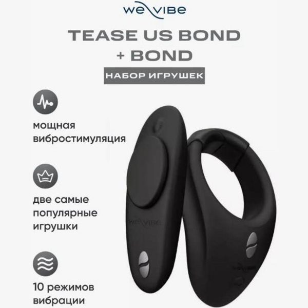 Набор для пар We-Vibe Tease Us включает в себя два бестселлера от We-Vibe – cмарт-вибростимулятор клитора Moxie и эрекционное кольцо Bond.