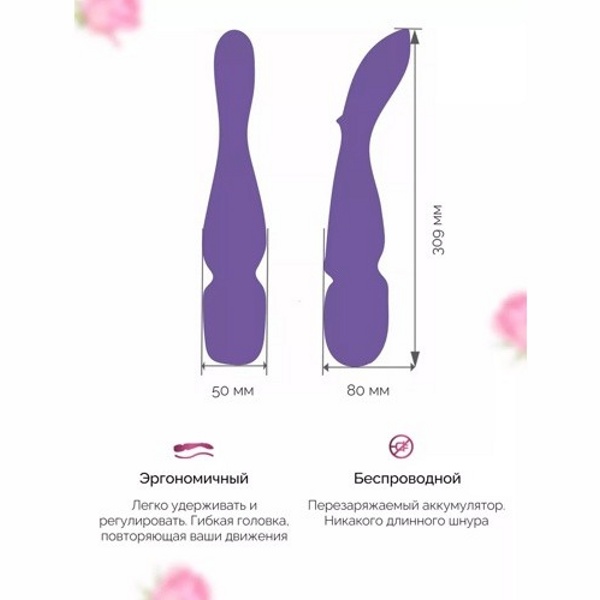 У массажера We-Vibe Wand движимая головка - изгибается под разными углами. И благодаря этому Вы можете максимально точно стимулировать желаемую зону, даже труднодоступные места.