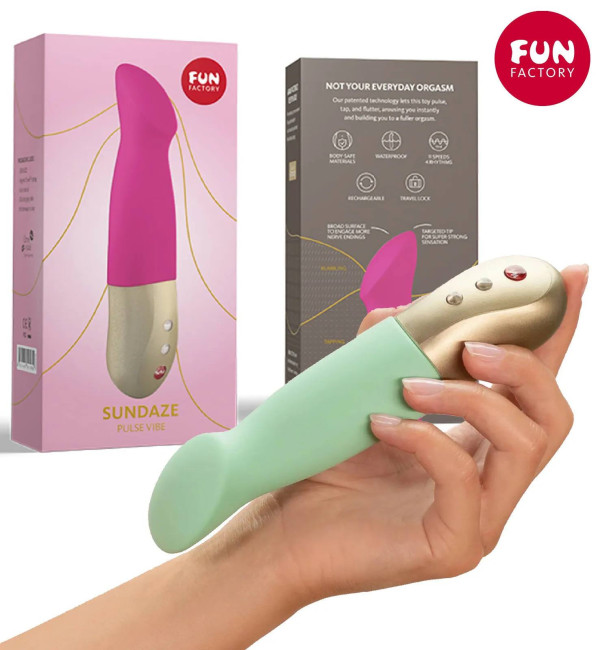 Вибратор - пульсатор SUNDAZE. Классный, необычный, суперский, и это не все восторженные отзывы, которые вы услышите. Это самый тихий вибратор-пульсатор. Точечное попадание на точку G. Мягкая бархатистая поверхность! Нажми кнопку и посмотри, как вибрация передаётся на головку вибратора. Он найдет каждую эрогенную зону и заставит тебя расслабиться.