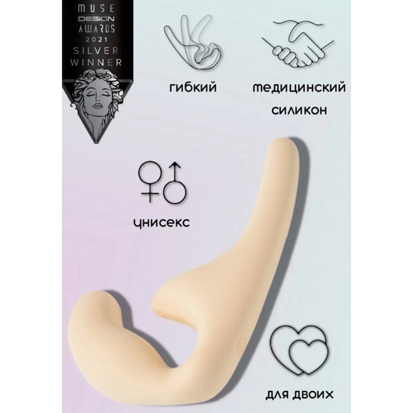 Natural Seduction - безремневой анальный страпон. Изготовлен из гипоаллергенного медицинского силикона. Эргономичная форма страпона помогает с легкостью удерживать игрушку мышцами влагалища. Также, страпон имеет клиторальный отросток для дополнительной стимуляции активного партнера во время фрикций.