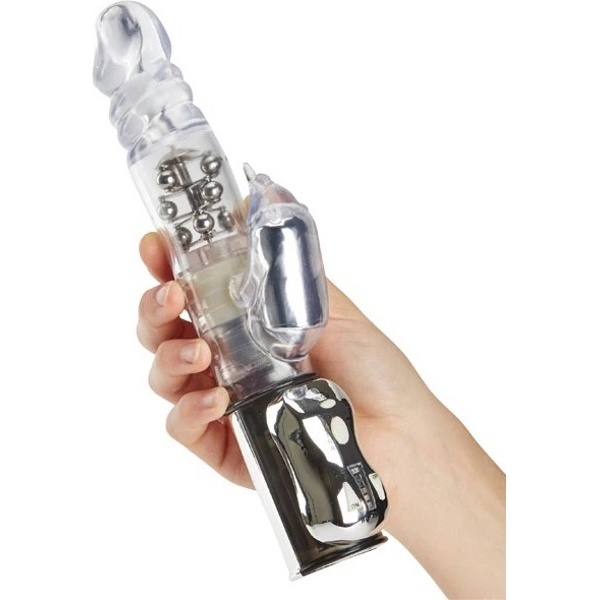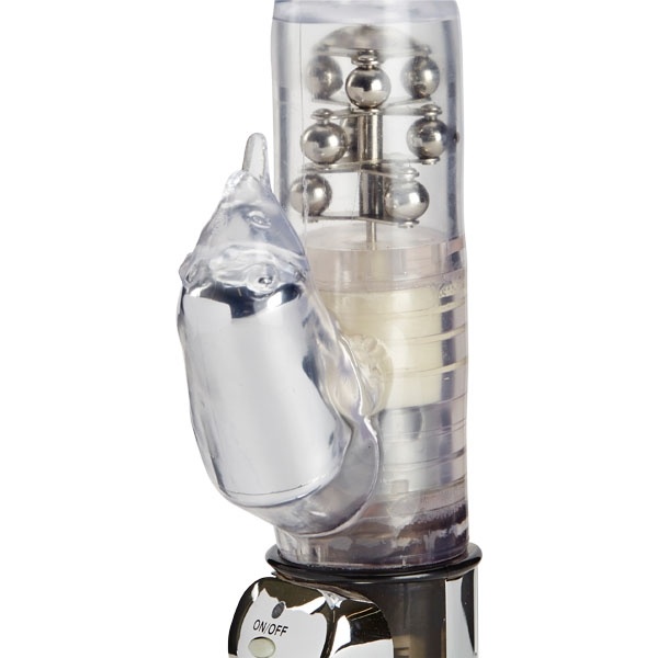 Вагинальный отросток имеет полуреалистичную форму с гладкой конической головкой, которая обеспечивает легкое и комфортное проникновение, а клиторальный стимулятор выполнен в форме кротика с длинным носиком, который будет нежно дразнить внешние эрогенные зоны и приближать пик удовольствия. За счет подвижной головки и вращающихся внутри шариков обеспечивается максимальная стимуляция даже самых труднодоступных внутренних чувствительных точек.