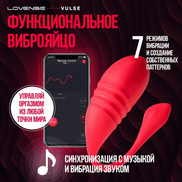 Вибрации и фрикции точечно стимулируют точку G с интенсивностью до 120 ударов в минуту, обеспечивая вам незабываемые моменты удовольствия. Длина хода фрикционной части – 1 см. С широким спектром функций приложения Lovense Remote, управление игрушкой становится легким и удобным. Управляйте Lovense Vulse с помощью звуков и музыки. Создавайте собственные паттерны вибраций и регулируйте интенсивность движений, оставляя ваши руки свободными для любых других дел.