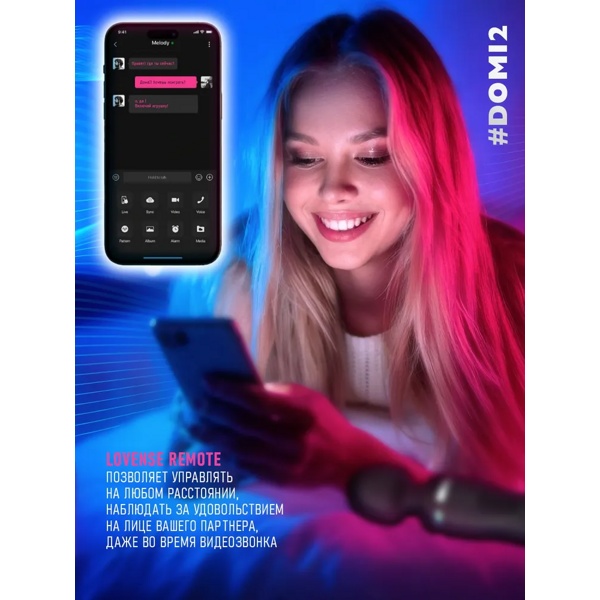 Массажер выполнен из бархатистого и очень нежного на ощупь силикона - гипоаллергенного и идеального для чувствительной кожи материала. Также Lovense Domi Programmable Wand 2 полностью защищен от воды и может использоваться в ванне и душе столько, сколько Вам пожелается. Защита позволяет даже окунать устройство полностью под воду. Как и все игрушки с управлением посредством смартфона, Lovense Domi 2 Wand позволяет контролировать его работу на расстоянии. Это означает, что Вы можете передать управление своим удовольствием своему партнеру, даже если он находится очень далеко от Вас. Сама игрушка коннектится с телефоном посредством bluetooth, а для управления на большом расстоянии Вашему партнеру также нужно установить приложение на свое устройство и подсоединиться посредством интернета к Вашему.
