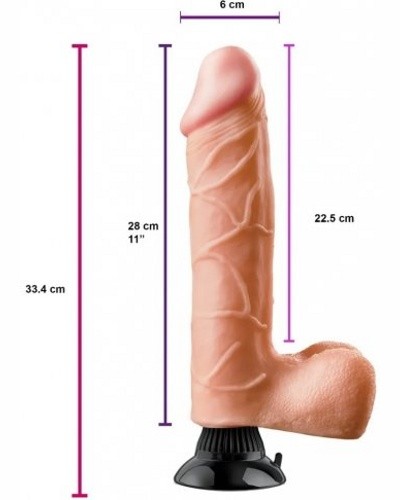 Вибратор Real Feel Deluxe No. 11 при общей длине 27 см имеет рабочую длину 24.1 см. Диаметр пениса у основания составляет 6.4 см. С такой габаритной игрушкой советуем использовать лубриканты именно на водной основе. Так проникновение не вызовет дискомфорт и не повредится материал игрушки.