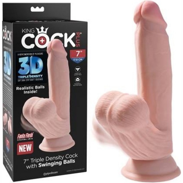 Почувствуйте разницу! Фаллоимитатор подвижной мошонкой 7" Triple Density Cock With Swinging Balls изготовлен из нового и улучшенного материала Fanta Flesh®, что делает его жестким внутри и мягким снаружи. Каждый King Cock® изготовлен из соответствующих материалов и тщательно проверяется на соответствие нашим рекомендациям по качеству. Вы можете наслаждаться каждым шедевром King Cock® с полной уверенностью.