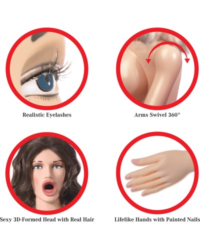 Надувная кукла для секса с открытым ротиком Pipedream Extreme Dollz B.J. Betty Oral Sex Love Doll и 3D лицом, имеет реалистичную вставку в форме вагины и ануса, изготовленную из бархатистого и приятного на ощупь материала, имитирующего человеческую кожу и полностью безопасного для организма