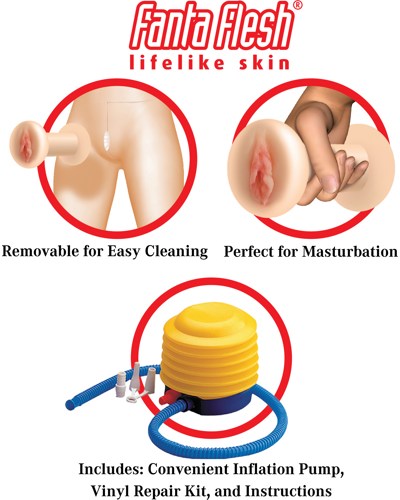 Комплектация: надувная кукла, двухсторонняя вставка из ТПР в форме вагины и ануса.