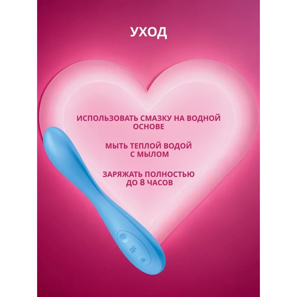 Шелковистое силиконовое покрытие — фирменный знак Satisfyer, тактильно нежный и приятный на ощупь. G-Spot Flex 4 позаботится о самых чувственных прикосновениях даже в ванной и душе. Благодаря водонепроницаемости IPX7 игрушку можно погружать под воду до 30 минут. Чтобы получить максимум удовольствия и сохранить материал в наилучшем виде, рекомендуется пользоваться качественной смазкой на водной основе.