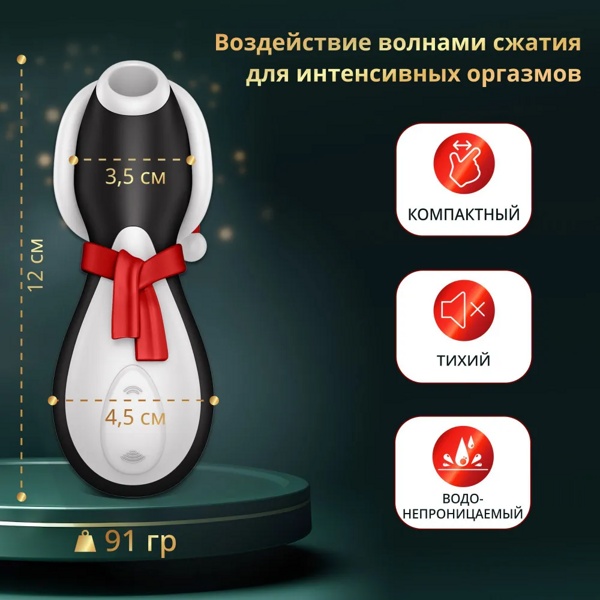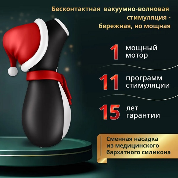 Satisfyer Penguin Holiday Edition - Вакуумно-волновой бесконтактный стимулятор клитора станет отличным подарком на Новый год.