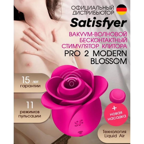Satisfyer Pro 2 Modern Blossom – это уникальный стимулятор в виде прекрасной розы, который сочетает в себе нежный цветочный дизайн и невероятный функционал!