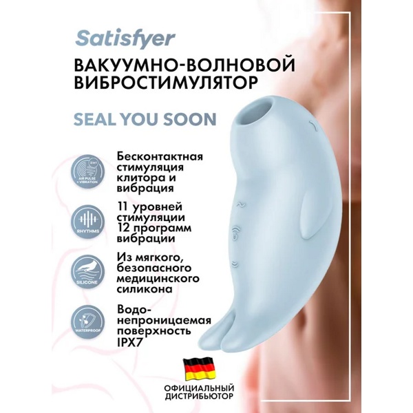 Satisfyer Seal you soon – это вакуумно-волновой вибратор с уникальным дизайном, который напоминает очаровательного морского котика.
