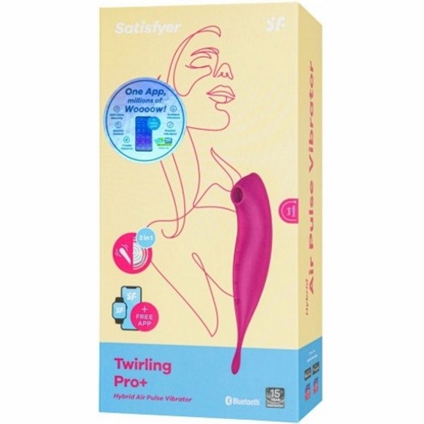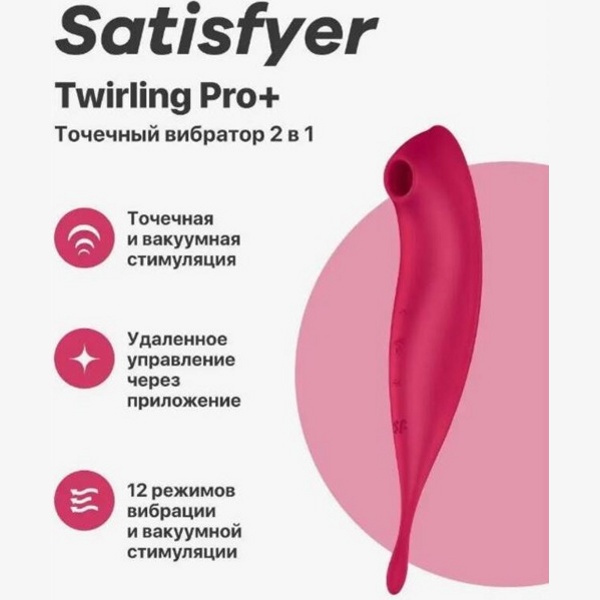 Satisfyer Twirling Pro+ - это уникальный продукт, который включает в себя функции бесконтактного вакуумного массажера, а также вибростимулятора для любых эрогенных зон.