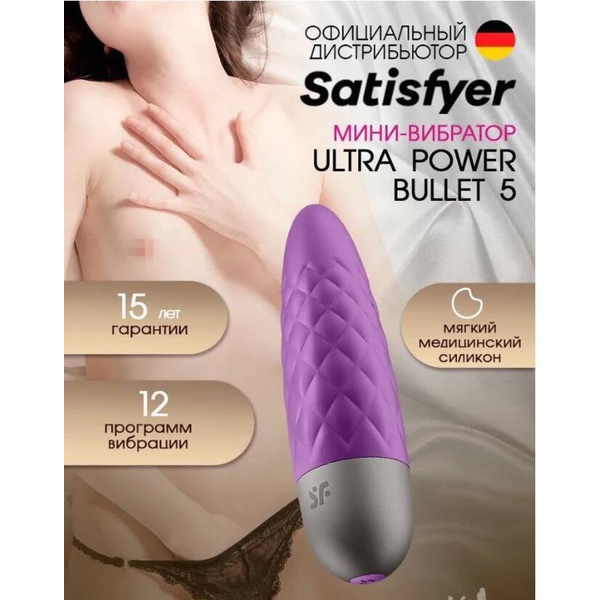 Возбуждающая прелюдия, запоминающийся эротический массаж, деликатная стимуляция клитора, дополнительное удовольствие во время секса - со всеми этими задачами вибростимулятор Satisfyer Ultra Power Bullet 5 справляется безукоризненно!