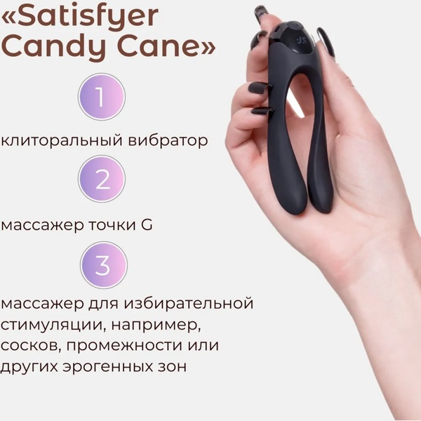 Satisfyer Candy Cane станет органичным продолжением вашей руки, что максимально повысит точность стимуляций, ведь фактически вы просто ласкаете себя пальцами!