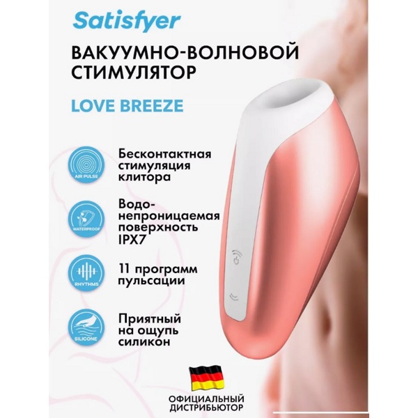 Satisfyer Love Breeze: - вакуумно-волновой стимулятор клитора, он сочетает в себе стимулирующие волны воздушного давления Air Pulse и чувственную вибрацию.