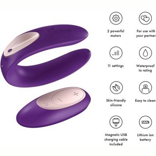 Отличительная особенность Satisfyer Double Plus Remote — два моторчика и увеличенный диаметр вагинальной части и пульт ДУ! С ними стимуляция клитора, точки G и пениса возрастает в разы, что приводит к ошеломляющему по своей интенсивности наслаждению. Усиливает это наслаждение двойная вибрация! Позвольте себе большее — позвольте себе Partner Toy Plus!