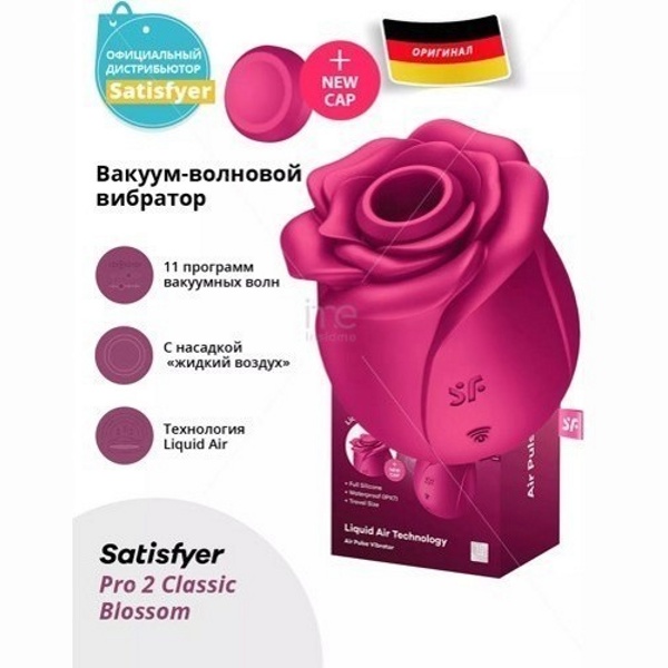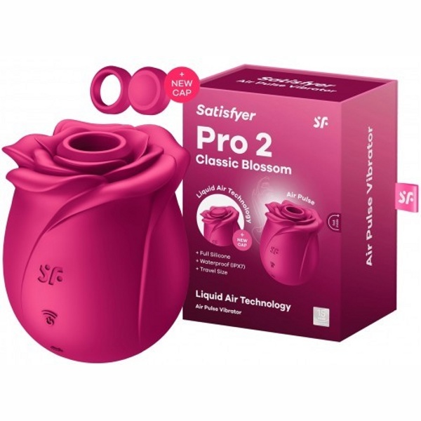 «Satisfyer Pro 2 Classic Blossom» - Вакуумно-волновой бесконтактный стимулятор в виде бутона розы и и насадкой "жидкий воздух".