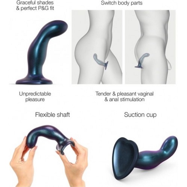 Фаллоимитатор Strap-On-Me Dildo Plug Snaky M – это секс игрушка как для женщин, так и для мужчин, которую можно использовать и в качестве фаллоимитатора, и как анальную пробку. Фаллос имеет необычный по форме, слегка изогнутый ствол с волнистой поверхностью и широкой головкой. Такая форма отлично подходит для стимуляции вагинальных эрогенных зон, в том числе точки G, а также для массажа анальных стенок и даже простаты у мужчин. Секс игрушка достаточно гибкая, а поэтому Вы ее с легкостью можете сгибать и наслаждаться комфортным интимным процессом. Изготовлен фаллоимитатор из высококачественного жидкого силикона, который в своем составе не содержит фталатов и вредных веществ. Материал космического цвета, приятный на ощупь, нежный, безопасный в использовании и гипоаллергенный. На основании расположена прочная присоска, с помощью которой фаллос можно удобно закрепить на ровной и гладкой поверхности, после чего наслаждаться стимуляцией в разных позах и местах.
