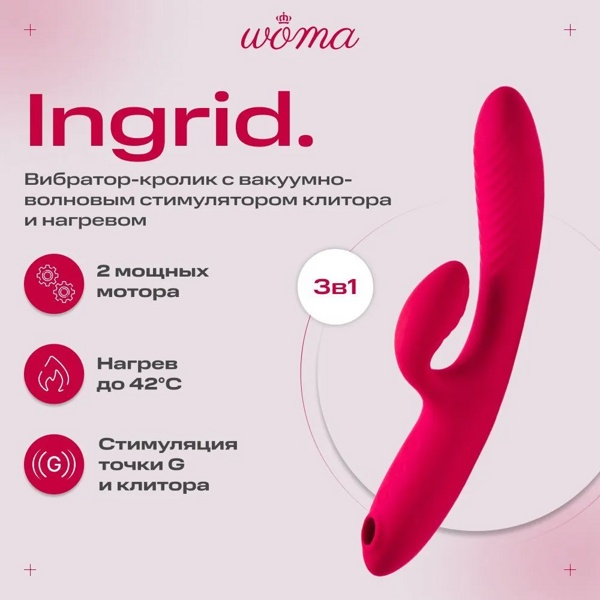 Woma Ingrid - Тройной вибратор-кролик с вакуумной стимуляцией и нагревом