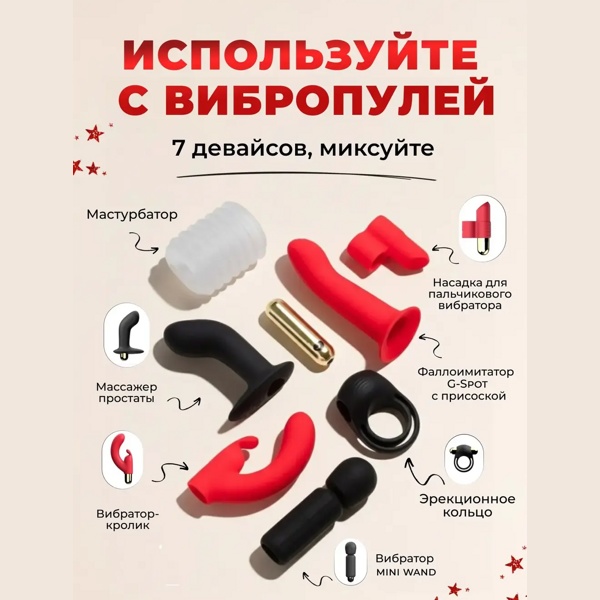 Мини-вибромассажер. Совместим с вибропулей и подходит для использования на разных эрогенных зонах.